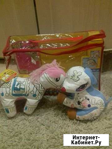 Лошадка и щенок для разукрашивания фломастерами.До сих пор в упаковке.Хороший мягкий наполнитель.Покупали в Детском мире за дорого.Выросли! Категория: товары для детей и игрушки. Состояние: б/у