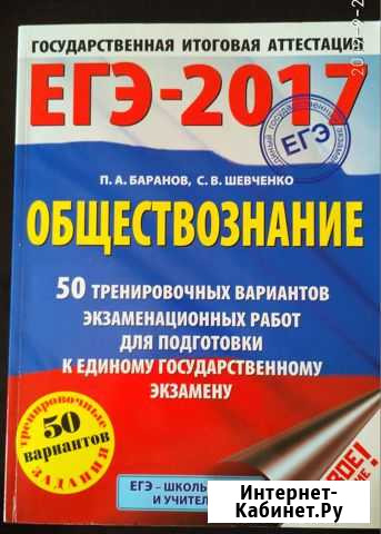 ЕГЭ-2017. Обществознание. 50 тренировочных вариантов экзаменационных работ для подготовки к единому государственному экзамену Авторы:П. А. Баранов, С. В. Шевченко Формат А4, 484 стр Состояние: б/у.книги и журналы