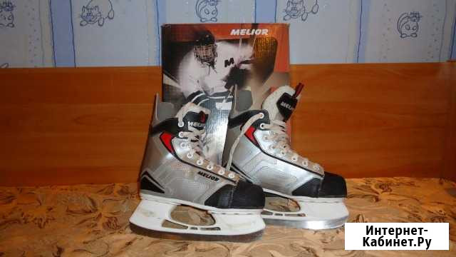 б\у хоккейные коньки melior размер 38, состояние отличное. Материал корпуса морозостойкий полиуретан, материал подошвы морозостойких ПВХ. материал ботинка Сетка, иксуственная кожа. внутренний материал, : cambrelle, материал лезвия нержавеющая сталь Состояние: б/у.спорт и отдых