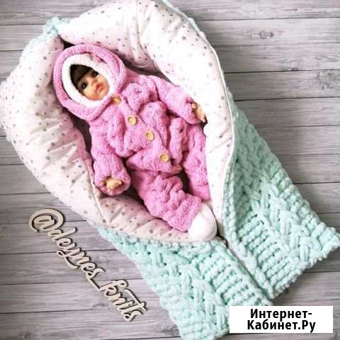 Вязаный конверт трансформер. Широкая цветовая гамма. Подклад 100% хлопок Утеплитель альполюкс 200 (до - 30) Удобно использовать в коляске для прогулок. Можно дополнить комбинезон ом, шапочкой, пинетками. Категория: товары для детей и игрушки. Состояние: новый