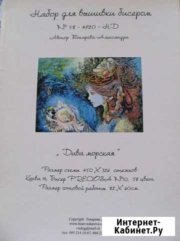 Авторский набор А. Токаревой «Дива морская» Вся комплектация набора. Размер готовой работы 82х60 см. Состояние: б/у.