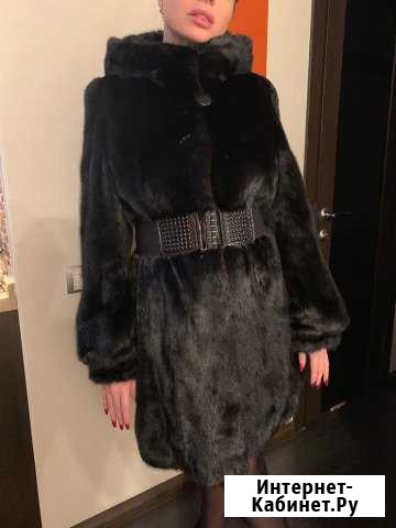 Чёрная норковая шуба б/у в отличном состоянии. С капюшоном. Можно носить как с поясом, так и без (пояс входит в стоимость). Свободная, к низу заужена. Тёплая. Категория: одежда, обувь, аксессуары. Размер: 44–46 (m)