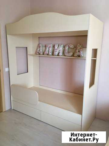 Замечательная кроватка-домик с 2-мя вместительными ящиками, полкой для игрушек,съёмным бортиком и штангой для штор. С матрасом Орматек,спальное место 70170. (матрас заказывался под размер кровати) Всё в отличном состоянии. Категория: мебель и интерьер