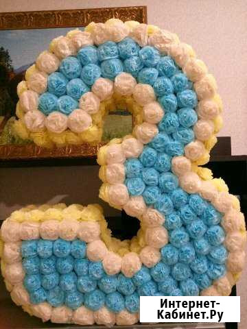 Отдам в прокат прекрасную объёмную цифру для дня рождения, для украшения праздника и фотосессии. Каркас выполнен из картона, обклеена цветочками из бумажных салфеток с обеих сторон. Сама стоит, очень устойчивая, высота 65 см. Ручная работа, делала сама для своего малыша.