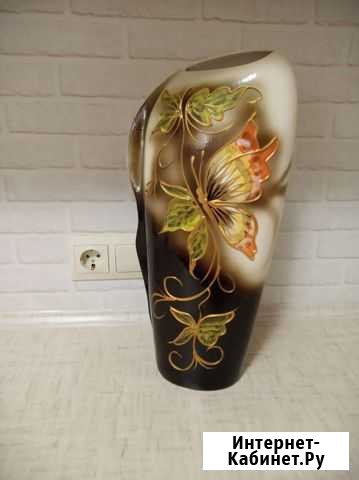 Ваза крупная, напольная или на низкую тумбу. В самом широком месте - 20 см, высота - 45. Тяжеленькая, устойчивая. Состояние новой вещи, у меня не вписалась по цвету ? Планировала наполнить камышом. Забрать можно с 15:00 до 21:00 по предв. договоренности. Адрес указан ? Состояние: новое.мебель и интерьер