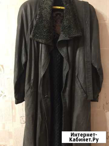 Плащ кожаный, Италия, хорошего качества. Есть пояс. Хорошая длина. Воротник из каракуля отстегивается. Теплая стеганая подкладка. Категория: одежда, обувь, аксессуары. Размер: 44–46 (m)