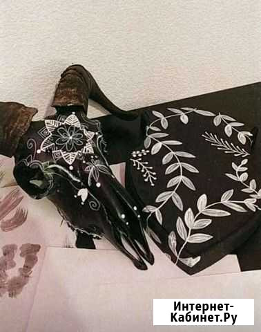 Расписной череп барана с медальоном, возможна работа на заказ по вашим эскизам. Также в наличии много черепов без росписи. Состояние: новое.коллекционирование