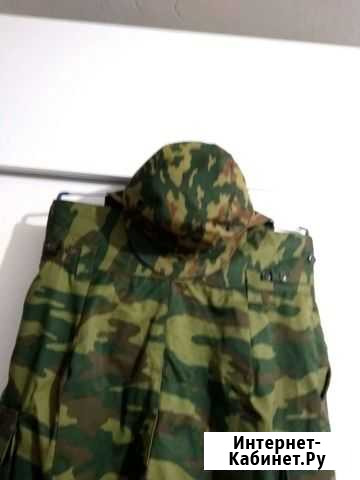 Новый, штаны на ватине, ватные штаны полностью вынимаются, остаются лёгкие из военной плащёвки, не пригодился, приобретался для зимней охоты и рыбалки. Замеры: Длина брюк от пояса 111 см , ширина пояса 45 см, по бедрам 55 см . Но всё приблизительно, измерить полностью невозможно , примерить можно с 46 по 50 размер. К нему есть щапка- ушанка из волка за 500 р. Состояние: новое