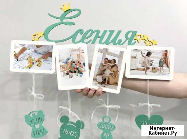 Индивидуальная фоторамка с метрикой из дерева станет отличным подарком родителям на выписку из роддома или День рождения ребёнка. Различные варианты дизайна, количества фото, шрифтов, фигурок для метрики и расцветки. Придумаем идеальный вариант для интерьера детской комнаты. Заходите в Инстаграм на LoodyWoody, найдёте много интересного - детские панно, зеркала и полочки, декор для детской комнаты. Медальницы для спортсменов. А так же фоторамки в подарок на годовщину свадьбы, родителям, друзьям. Дизайнерские ключницы, элементы сервировки стола. Все это экологично, качественно и современно. В стоимость любой фоторамки входит печать фото. Каждое из наших изделий сразу упаковано для подарка? Дарите эмоции, которые останутся на долго! Состояние: новое.мебель и интерьер