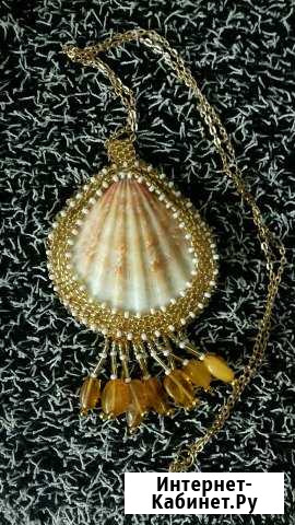 Кулон: ракушка гребешок, балтийский янтарь и чешский бисер на цепочке золотого цвета. Ручная работа. Возможно изготовление на заказ. Категория: часы и украшения