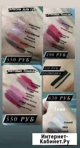 Помада, блеск для губ, тени для век Договорная цена