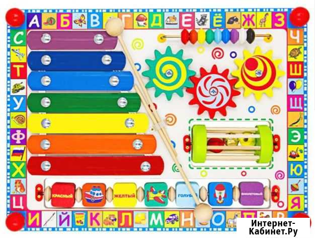Развивающая игрушка Бизиборд- это удивительная вещь, которая способна занять ребенка на долгое время, подарить ему много ярких эмоций, помочь в развитии необходимых навыков. Игрушка разработана на основе методики известного педагога Марии Монтессори и содержит множество развивающих элементов - буквы русского алфавита, разноцветные кубики с названиями цветов радуги и видами транспорта, счеты, металлофон, шестеренки, вращающийся барабан, бусины Состояние: б/у.товары для детей и игрушки