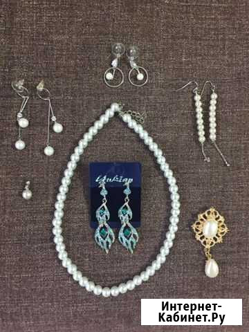 4 пары серёг, бусы , подвес, брошка. Из всего этого одеты были одни серьги. Брошь чуть затертая.Покупалось в магазине «Сорока» Состояние: б/у.часы и украшения