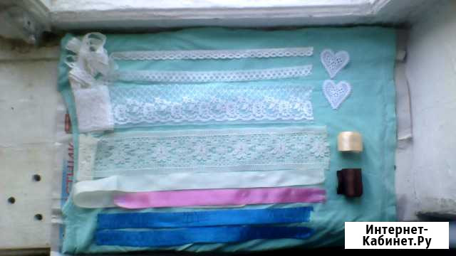 кружево белые 2 штуки ширина 5 см длина 30 см.=20 руб. кружево узкое ширина 2см длина 10 см.=20 руб. ленты атласные кофейного цвета-ширина 4 см. длина 310 см.=50 руб лента бежевая-ширина 2.5 см длина 500см.=65 руб. забирать ул. гвардейская 1\24. ост патриса лумумба. кооперативный институт. искра. звоните на номер телефона. Состояние: новое.коллекционирование