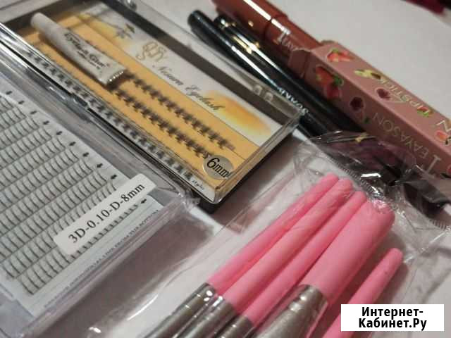 Ресницы по 40 рублей, в одном наборе клей в подарок Набор для макияжа 35 рублей, Подводки черные и ярко жёлтая по 35 рублей, помада в стике 40. Всё новое! Все отдам за 200 рублейкрасота и здоровье
