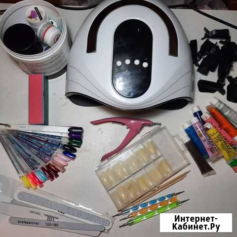 Набор для маникюра : Лампа Доцы Краски для ногтей Пилочки Разбавитель Кусачки для ногтей Гель краски Баф Типсы для наращивания 7 гель лаков на выбор Профессиональная база , матовый и гранцевый топ Состояние: б/у.красота и здоровье