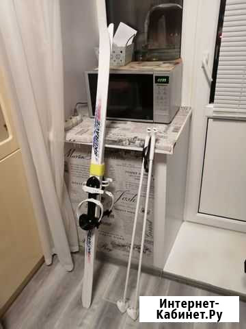 Лыжи для начальных классов, пластик, крепления на любой размер, лыжи 140 см палки 110 см Состояние: б/у.спорт и отдых