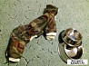 Комбеззимний для маленькой собачки, даж щеночка. В подарок ботиночки. Комбез: Длина спинки, см 20 - 22 Обхват шеи, см 26 Обхват груди, см 32 - 34 Ботиночки: подошва 4*3,2 Состояние: новое
