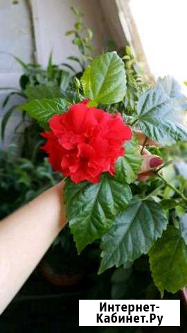 Сортовой гибискус, в данный момент в стадии цветения, много бутонов. Так же есть много других комнатных растений..
