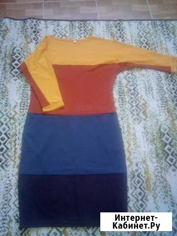 Платье из качественного трикотажа осень-зима, с карманами, в хорошем состоянии, вырез лодочка, низ цвета шоколад, длина 98см, рукав 3/4, с манжетом, сидит по фигуре, причина продажи изменился размер одежды Категория: одежда, обувь, аксессуары. Размер: 46–48 (l)