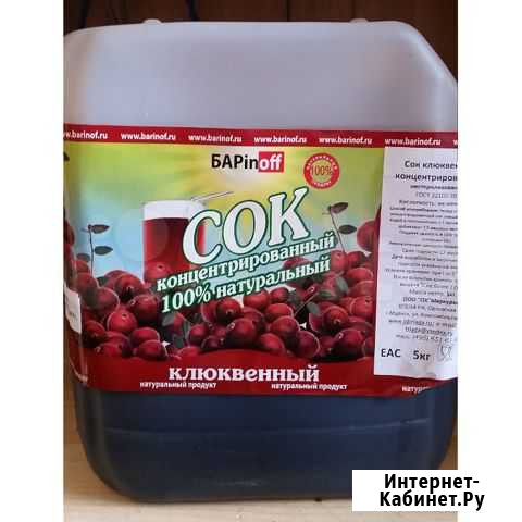 Концентрированный сок «Клюквенный», канистра 5 кг 2 550 руб.