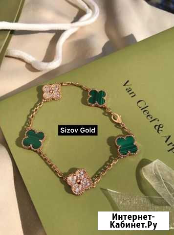 Новый золотой браслет 585 пробы под Van Cleef с бриллиантами, малахитами, гравировками и коробкой.Вес 14.65 гр. Бриллианты кр 57 0.99 ct. Срок изготовления 9 дней. Скажем нет перекупщикам. Кликайте и переходите в наш магазин у нас огромный выбор Абсолютно любая проверка у любого ювелира или мастерской Наш ИНСТАГРАМ: SIZOVGOLD Тип товара: браслеты. Состояние: новое.часы и украшения