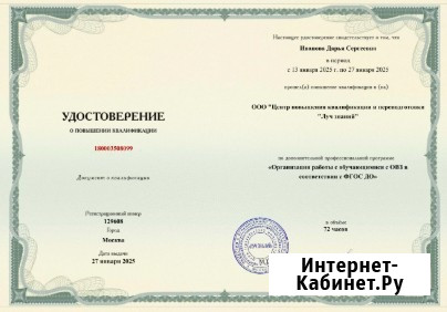 Мы оказываем услуги в сфере дополнительного профессионального образования, для лиц, имеющих базовое образование, в области медицины(врачи, мед. сестры, фельдшеры санитары. Выдается: 1. диплом переподготовки, 2.удостоверение о повышении квалификации. 3.удостоверение о тематическом усовершенсивовании.