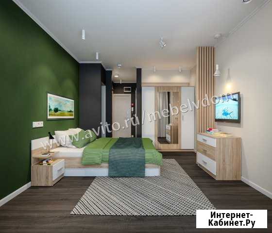 Размеры каждого элемента: 1) Шкаф 4-х дверный:  Ширина - 1600 мм Высота - 2000 мм Глубина - 577 мм 2) Кровать:  Ширина - 1646 мм  Высота - 704 мм Глубина - 2044 мм 3) Комод:  Ширина - 880 мм Высота - 719 мм Глубина - 440 мм 4) Тумба прикроватная: Ширина - 380 мм Высота - 704 мм Глубина - 330 мм Шкаф разделен на два равных отделения по 90 см - в одном из которых располагается штанга для одежда, а в другом - 4 вместительные полки.  Категория: мебель и интерьер