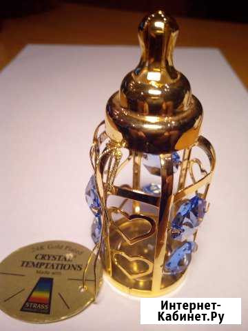 Бутылочка детская 9 см позолоченная с хрусталиками Сваровски. Категория: мебель и интерьер