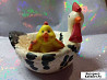 Пасхальная керамическая статуэтка - подставка для яйца "Курица с цыплёноком" Состояние: б/у.