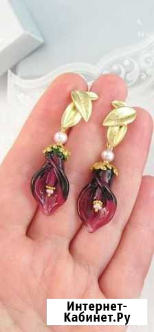 Авторские бордовые каллы с жемчугом на красивых позолоченных гвоздиках - листьях. 5 см. Состояние: новое.часы и украшения