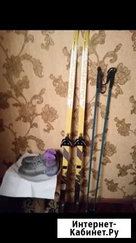Продаются новые - 1) лыжи 160см, палки 120см, фирменные красные на 38размер. 2) жёлтые 160см, палки 135см на 41размер. Комплект -Лыжи, ботинки, палки. Ботинки натуральные. За каждый комплект 3500тр. Состояние: б/у.спорт и отдых