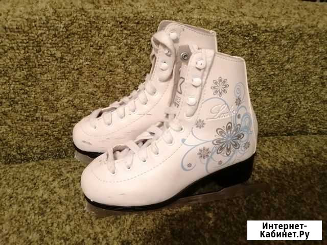 Коньки в отличном состоянии, красивые, катались раз 5,быстро нога выросла. Точеные.Продаю дёшево, т.к надо купить другие побольше)  Состояние: б/у.спорт и отдых