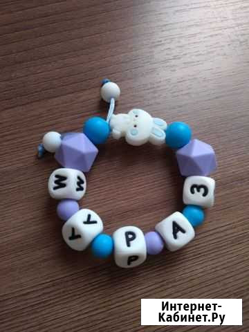 Браслетик -грызунок из пищевого силикона. Легко держать в руке, грызть, играть. Можно сделать любой вариант с именем и без. Состояние: новый.товары для детей и игрушки