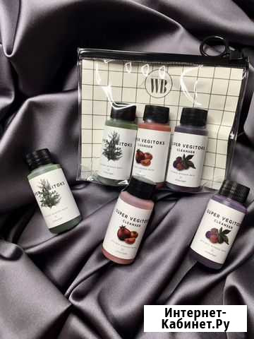 Набор из трех детокс-пенок Wonder Bath Super Vegitoks Cleanser Miniature Kit - отличный способ попробовать очищающее средство нового формата. Детокс-пенка обеспечивает глубокое очищение от загрязнений, кожного жира и стойкой декоративной косметики; мягкое отшелушивание и полирование кожи; выведение шлаков и токсинов; освежение цвета лица и снятие отечности. Детокс-пенки представляют из себя коктейль «смузи» - более 50 перемолотых фруктов, овощей, трав и других натуральных растительных компонентов, которые превосходно заботятся о здоровье вашей кожи. В составе набора: Wonder Bath Super Vegitoks Cleanser Green 30 ml. Этот коктейль содержит экстракт спирулины, брокколи, пророщенной пшеницы, лайма, авокадо и много другого, что увлажняет, освежает кожу, тонизирует и способствует уменьшению покраснений и высыпаний. Wonder Bath Super Vegitoks Cleanser Red 30 ml. Этот коктейль содержит экстракт граната, томата и клубники, которые вместе работают на выравнивание тона кожи, осветление, тонизирование и придания ей упругости. Wonder Bath Super Vegitoks Cleanser Purple 30ml. Этот коктейль собрал в себя экстракт ягод аронии, экстракт свеклы и баклажана. Совместно этот фиолетовый коктейль дарит антиоксидантный уход, сужают поры и успокаивают кожу. Подходит для всех типов кожи. Способ применения: На сухую кожу необходимо нанести немного средства. Пенка начинает пузыриться. Этими пузырьками массируем лицо, а оно все продолжает пузыриться. Происходит процесс оксигенации- снабжение кожи кислородом. Через несколько минут смываем теплой водой. В наличии 3 набора По предоплате могу передать через рцр или почтой(почтовые на покупателе)