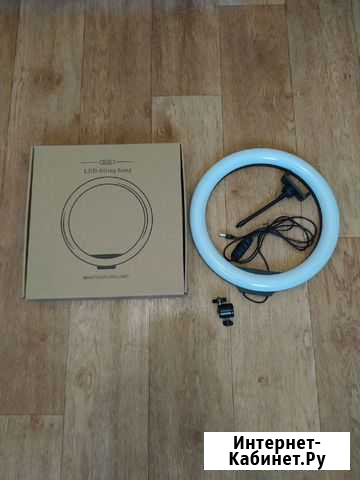 Новая кольцевая лампа диаметром 33см. Без штатива! ? Характеристики: Держатель для телефона в комплекте (телефон можно располагать вертикально и горизонтально). Держатель универсальный, подойдет под любой смартфон!  Лампа наклоняется в разные стороны, можно отрегулировать как нужно.  Свет и яркость регулируется.  Работает от USB. ? Работаем официально! После покупки Вы получаете чек и гарантию по чеку на данный товар 30 дней. Если после оплаты выявляется брак, мы обмениваем товар на идентичный, если есть в наличии. Либо делаем возврат средств. ? Кэшбэк 5% с каждой покупки Становитесь нашим постоянным клиентом и имейте возможность тратить накопленные баллы уже со следующей покупки в нашем магазине. Скидка за баллы возможна до 40% от суммы чека. ? Способы оплаты Наличными (если нужна сдача, уточняйте заранее) Переводом на Сбербанк ? Доставка по Омску или самовывоз Доставка нашим курьером осуществляется после закрытия магазина ежедневно в вечернее время. Стоимость доставки - 200руб. Самовывоз из магазина: Космический 99/2 ? Наши клиенты становятся ПОСТОЯННЫМИ Для всех клиентов у нас есть чат где выкладываются трендовые товары, после покупки мы предложим Вам в него добавиться! Состояние: новое.