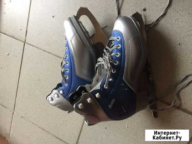 Продам коньки в отличном состоянии. Катались пару раз. 38 размер. В комплекте: сумка (в отличном состоянии, розовая/синяя) и защита на лезвия (новая) Категория: спорт и отдых
