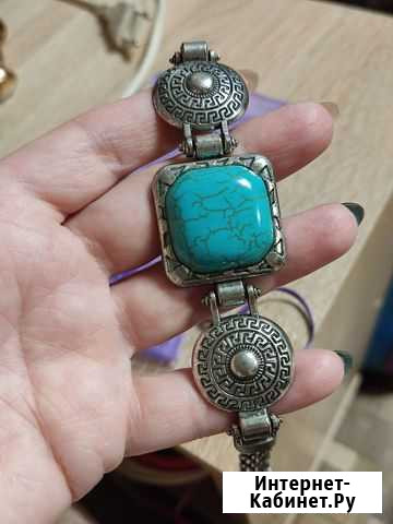 Браслет с бирюзой производства Америка Состояние: б/у. Цвет: голубой.часы и украшения