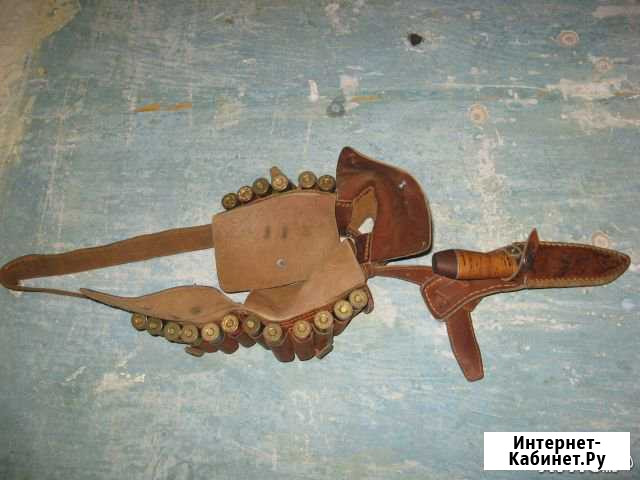Патронташ , пр-во ( Финский) , привозной , калибр - № 12 , 4-е закрытых отсека по 6 мест каждый , ножны . Кожа - цвет жолтый , б/у - сезон, состояние хорошее . ( В - продаже только кожа ) . (Торг ).