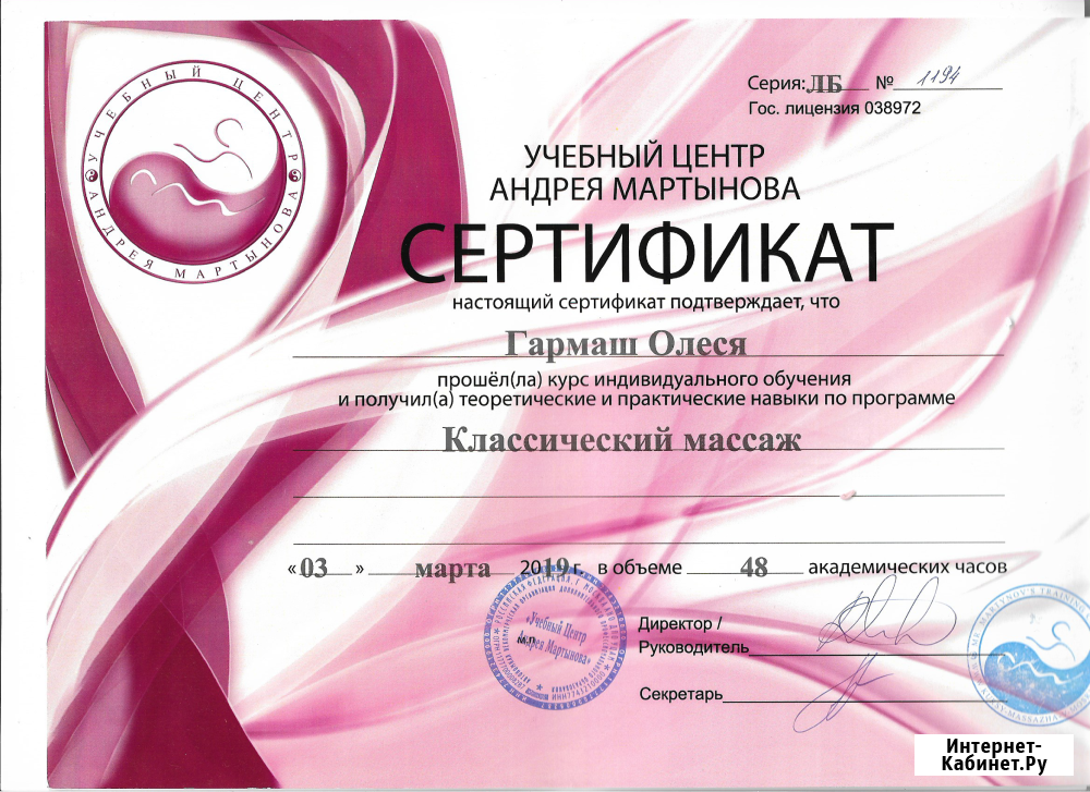 Я массажист имею сертификат делаю массаж обычный есть все для качественного массажа Вы останетесь довольны и Вам обязательно понравится. Специальность или сфера: массаж.