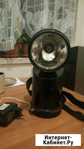 Мощный яркий фонарь с встроенным акб,зарядное в комплекте.Состояние отличное,практически не пользовался.луч метров на 50 точно бьёт