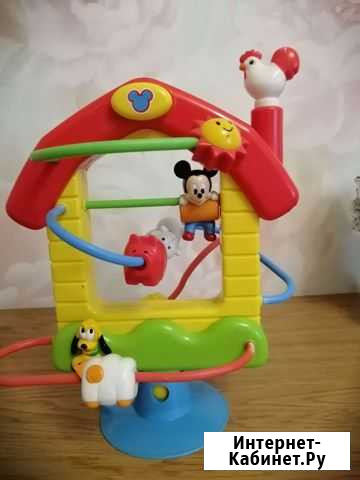 Игрушка лабиринт Disney. Персонажи мультика, петушок наверху крутится и издаётся интересный треск, кнопка сверху с мордочкой Микки нажимается и пищит Состояние: б/у.товары для детей и игрушки