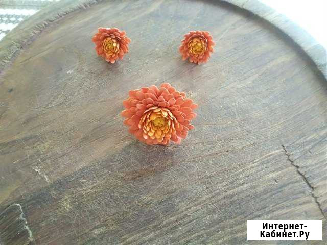Клипсы и кольцо хризантемы 350 руб.