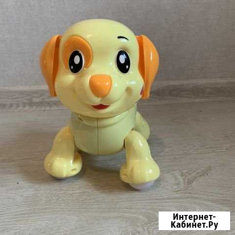 В отличном состоянии, как новый. У пёсика двигаются ножки и голова, крутится хвостик, он будет шустро передвигаться в любом направлении, обходит препятствия. Игрушка оснащена подсветкой, поёт весёлую песенку на русском языке! Категория: товары для детей и игрушки. Состояние: б/у