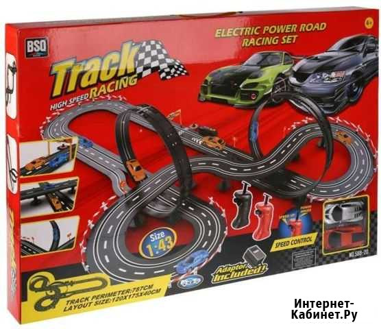 Почти новый автотрек. Длина 7.87м, машинки на пульте. Играли 1 раз. Коробка не сохранилась Состояние: б/у.товары для детей и игрушки