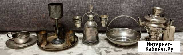 Мегалот из мельхиоровых предметор + самовар сувени