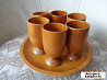 Продам декоративные стаканчики на подносе. Материал - дерево. Высота стаканчиков - 8 см. Диаметр подноса - 22 см. Производство СССР, 70-е годы ХХ в. Состояние: б/у.коллекционирование
