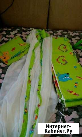Балдахин,бортик(на всю длину),пододеяльник,простынь.На бортике есть пятнышки(в одном месте),почти не заметные.На втором фото видно. Категория: товары для детей и игрушки. Состояние: б/у