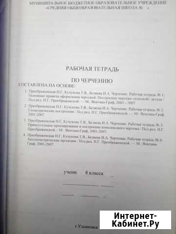 Рабочая тетрадь по черчению для средней общеобразовательной школы - 8 класс (для образца, выполнены не все задания) - в пластиковом скоросшивателе. Рабочая тетрадь по черчению для средней общеобразовательной школы - 9 класс (для образца, выполнены не все задания) - в пластиковом скоросшивателе. Цена за 1 шт. = 200 руб. Состояние: б/у.книги и журналы