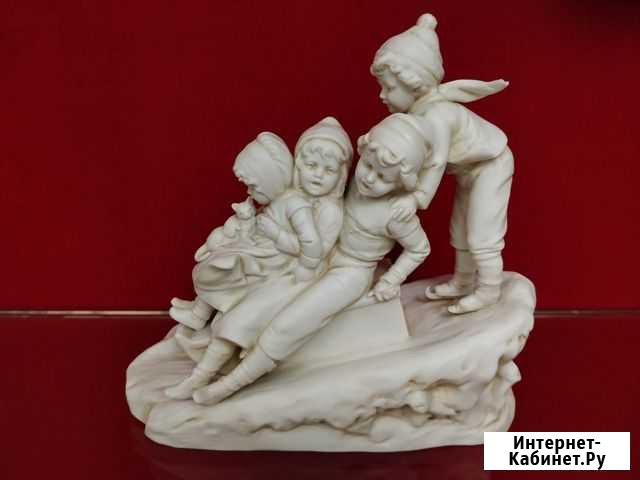 Антикварная фигура из бисквита. Трое детей на санках с кошкой. Хорошее состояние. Есть два незначительных скола, возможно исправить(кусочек шарфа и ещё один). Красивая пластика. 19 с. ширина, 17 см высота, 7 глубина. Есть клеймо. Европа, 1930-е года Состояние: б/у.коллекционирование